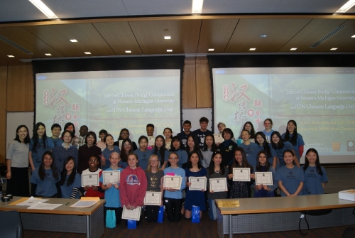 西密歇根大学孔子学院于4月21日成功举办了第二届汉语桥竞赛,并以此为核心活动庆祝联合国中文日。来自大激流林丘学区和卡拉马祖学区五所学校的师生和家长参加了本次活动。本届参赛选手通过精彩的演讲和才艺表演展现了自己的学习成果,表达了对中国文化和艺术的热爱。