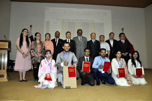 最后游翼参赞致闭幕词,他说这是一次盛会,本次汉语桥大赛是全巴基斯坦孔子学院共同参与的大学生中文竞赛,是历史上的第一次,并给大家简单介绍了孔子学院的名称由来,孔子是中国古代的一个教育家与哲学家等等,并表示语言是人类最为重要的交际工具,是为了交流而存在的,它联系了人与人、国与国。而汉语在这里正好联系了巴基斯坦与中国。在此对孔子学院为中文的传播与交流所做出的贡献表示支持与赞扬。也对参赛选手的精彩表演与努力付出而表示赞赏,希望大家继续努力学习汉语,获得更好的成绩。据悉,本次比赛的冠军将代表巴基斯坦赴华参加世界大学生汉语桥决赛,亚军将赴华观摩比赛。