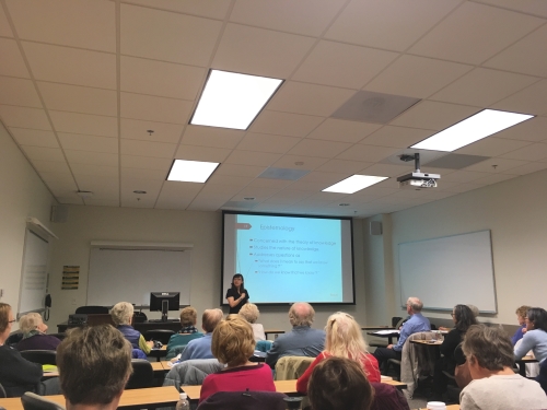 2018年春季,乔治梅森大学孔子学院在费尔法克斯市的安考(Encore Learning)和欧舍(Osher Lifelong Learning Institute)老年大学项目中,举办了关于全球化形势对于中国年轻一代的影响的讲座。讲座共分为四个部分——中国哲学、社会观念、科技与生活和中国饮食。讲座举办十分成功,受到当地学员们的一致赞赏。