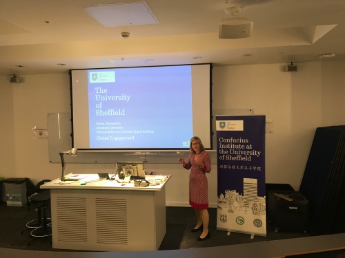 在暑期学校开班仪式上,谢菲尔德大学国际合作部国际机遇与交流处处长多特·史蒂文斯(Dörte Stevenson)对学生们的到来表示欢迎,并介绍了大学与谢菲尔德市,让大家对将要生活的新家有了初步了解。