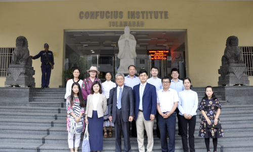 当地时间2018年6月24日上午,北京中国高校校友海外联谊会秘书长李培松先生一行三人到访伊斯兰堡孔子学院。伊斯兰堡孔子学院院长张道建及孔子学院全体教师于国立现代语言大学迎接代表团,并对代表团的到来表示热烈的欢迎。