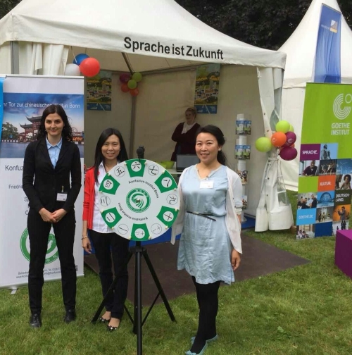 波恩孔子学院受邀参与了总统府开放日活动,以“语言就是未来”为主题向络绎不绝的访客介绍孔院,带领他们了解中国汉字的独特魅力与中国传统文化的深厚底蕴。