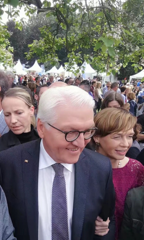 施泰因迈尔总统和他的妻子于中午12点45分莅临现场。总统对来访者表示热烈欢迎,并向大家表达了他对波恩的喜爱:“波恩是一个开放、国际化和创新型的城市,我们很愿意经常回来!”在欢迎仪式后,总统与他的妻子共同参观了开放日的展区并与来访者进行了亲切友好的交流。最后,他们在讲台上热情地回答了公民的问题。