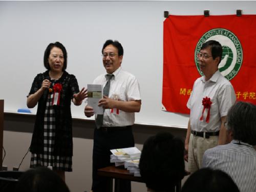 与以往不同的是,本次研修活动还由北京语言大学孔子学院事业部教师培训中心陈丽霞主任主持了“国别语言教育项目及成果发布会”。“国别语言教育”研究项目是国家汉办立项的研究课题。由靳卫卫教授主持的研究成果,在该项目中拔得头筹,浓缩了研究精华的《日本外语教育的现状及政策》一书,得到了最先出版发行,大家对靳院长团队的成果感到非常自豪,也深受鼓舞。陈主任还介绍了北京语言大学孔子学院针对研究生和汉语教师的各种进修项目和奖学金制度,引起了大家的兴趣;北京语言大学出版社海外拓展部区域经理蒋欣悦女士对汉语教材的推介,让大家对最新的汉语教材出版和影像资料有了更全面的了解。