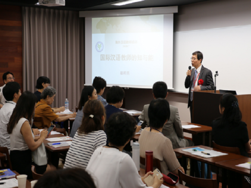 本次研修班安排了4场主题演讲,1场模拟课堂,还有科研成果发布会和汉语教材推介,内容丰富多彩,引人入胜。研修的第一场主题讲演“汉语教师的知识和能力”,由崔希亮教授主讲,崔教授结合自身丰富的海外任教经验和教学实例,从 “知识”和“能力”两个方面就对外汉语教师所应具备的素质作了阐述。通过崔教授风趣生动的讲解,大家更加明确了作为对外汉语教师的使命和今后努力的方向。