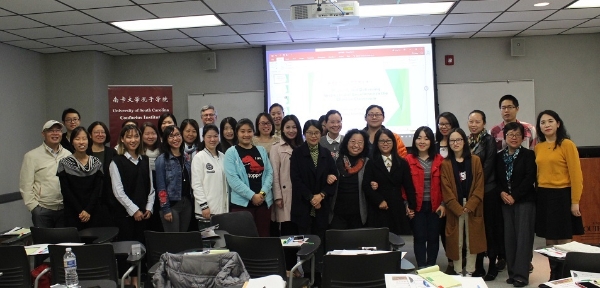 当地时间2017年11月10日到11日,南卡罗来纳大学孔子学院举办了中小学汉语教学观摩研讨及培训活动。来自南卡州哥伦比亚、斯帕腾堡、默特尔比奇、凯西、克林顿五个城市14所中小学的46名中文教师参加了此次活动。