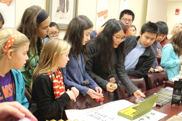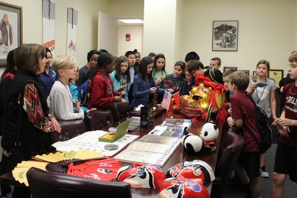 当地时间12月1日,来自南卡州莱克星顿县的草地峡谷中学(Meadow Glen Middle School)的中学生访问团一行73人参观访问了南卡罗莱纳大学孔子学院。访问团由64名11到14岁的中学生、两位老师和7位家长组成,是南卡孔院迄今为止接待的规模最大的中学生访问团。访问团中的学生都在学习汉语,有的刚刚起步,有的已经学了一年。这次访问南卡孔院的目的就是为了让学生进一步认识汉语和中国文化。