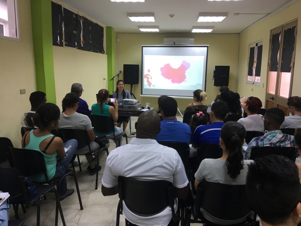 参加本次座谈的孔院师生多数是孔子学院为“2018哈瓦那国际书展”招募的志愿者,约30名。因此这次活动也是志愿者培训的一部分,至此,孔院的志愿者专场培训已经进行了14场。