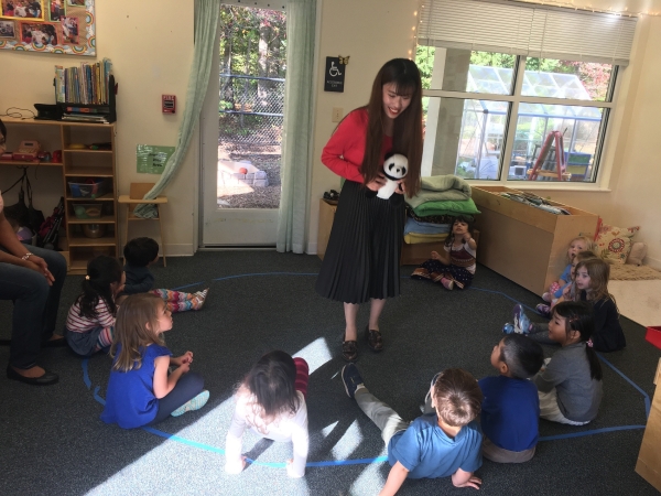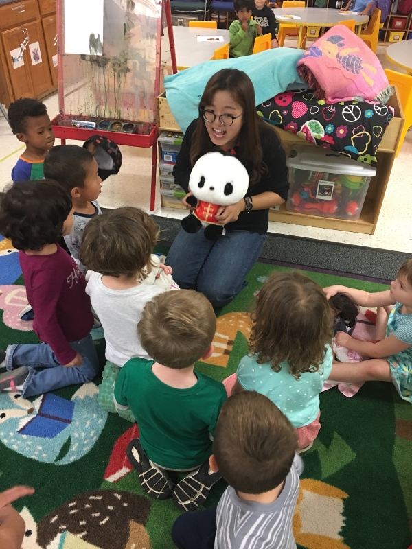 “你好,熊猫!你好,世界!”幼儿园孩子们不仅认识了新朋友,而且还学会了唱中文歌曲。该幼儿园的教师非常感谢乔治梅森孔子学院对这次国际日活动的支持,表示很期待孔子学院明年的中国农历春节活动。