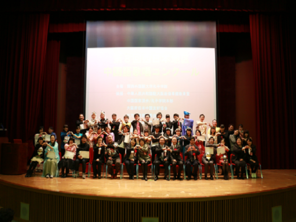 大学生·研究生为第一组,除了本校学生以外,还有来自大阪大学、大阪经济大学、神户学院大学、帝塚山大学、天理大学、同志社大学、奈良女子大学等关西一带院校的参赛选手。第一组获得一等奖的选手坂口凉演唱的是萧煌奇的《你是我的眼》。只用1只麦克风站在台上演唱的坂口同学用他绵长优美、又极富穿透力的歌声打动了全场观众。获得第二组一等奖的是来自冈山的市民荒牧辰宽先生,他演唱的是周杰伦的《最长的电影》。荒牧先生曾参加过多届西日本地区中文歌唱大赛,这是他继第5届大赛后再次获奖。台上选手饱含深情地演唱,台下观众热情地鼓掌,整个比赛现场沉浸在“优美的中文”歌曲声中。