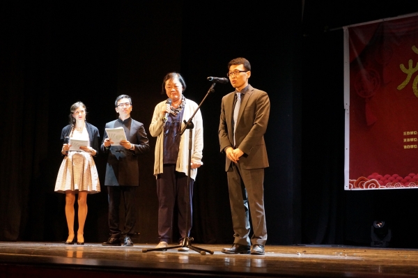 圣心孔院的中方院长郁有学教授致欢迎辞。他在致辞中表示了对到场嘉宾的感谢,向现场观众致以热忱的欢迎和问候。他祝大家在农历新春到来之际,家庭兴旺,事业发达,狗年“旺旺”!