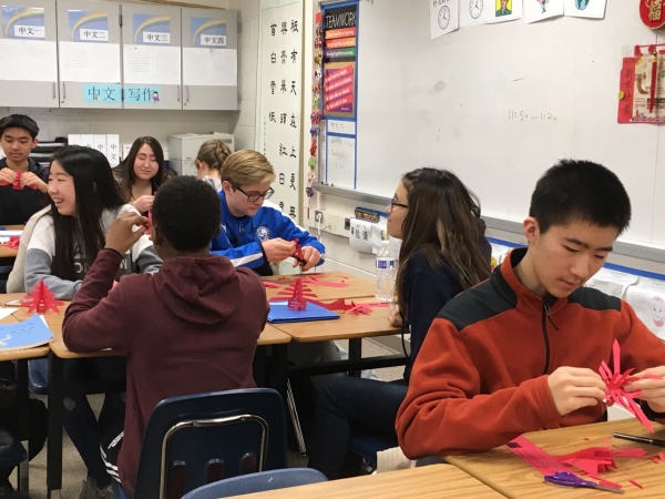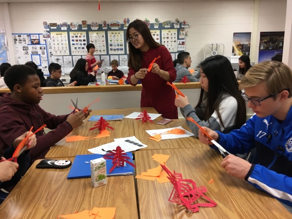 费尔法克斯高中的汉语教师杨老师说,剪立体“春”字对她也是第一次全新的体验,还有《好想你》这首歌曲很欢快上口,学生们都很喜欢。通过本次新春体验活动,同学们不但对剪纸艺术有了亲身体验,也对中国新春生肖文化有了进一步了解。这是乔治梅森孔院把中国文化送进中小学系列活动的又一次成功活动。