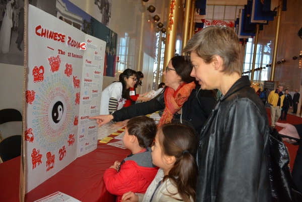 “啊,我是蛇年出生的!”“啊,我和丈夫俩都属狗?”很多第一次接触中国十二生肖的大人和孩子们围在梅森孔院制作的十二生肖展板前,兴致勃勃地指点着上面列出的年份和相关属相。转过身来,当梅森孔院的老师和志愿者告诉他们各自属相的文化含义时,他们或感到惊诧,或觉得非常有趣,或开心得大笑。