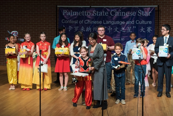 经过激烈角逐,来自南卡孔院东点学校孔子课堂的艾米丽·纳普(Emilie Knapp)表现出色,凭借配乐诗朗诵《再别康桥》和优美的长扇舞摘得中小学组“南卡未来之星”的称号。大学组比赛中,来自南卡大学孔子学院中文班的刘笑嫣(Katie Rose Dionne)脱颖而出,一举夺得“南卡中文之星”的桂冠。她用纯正流利的中文讲述了她在中国北京生活和学习了一年的经历和感想,表达了“向前走”去改变世界的积极愿望。她将代表南卡罗来纳州前往华盛顿特区参加第十七届“汉语桥”世界大学生中文比赛的选拔赛。