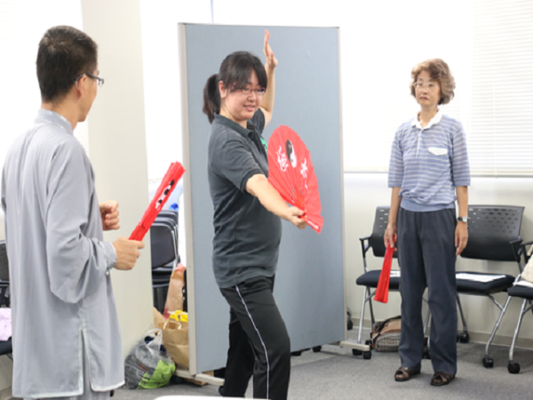 8月17日下午,关西外国语大学孔子学院与枚方市EARTHTIME俱乐部合作举办了以“太极扇”为主题的中国文化讲座和体验活动。