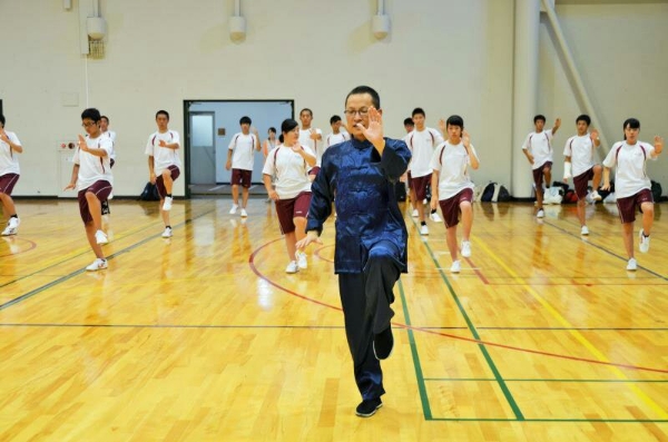 适逢高温天气,在北陆大学药学部的体育馆里,一套8式杨氏太极拳演练下来,每个同学的运动服很快就湿透了。第一次体验太极拳的同学擦着汗说,没想到慢悠悠的太极拳需要调动身体的每一块肌肉,会有如此大的运动量。但很快,抖空竹、踢毽子、撞拐等中国传统游戏又让同学们乐在其中。