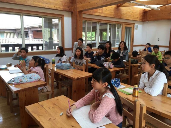 从3岁的幼儿到初中生,约有二十位年龄不等的少年儿童周末前来孔院学习汉语。应家长要求,来自北京语言大学的计丽萍老师把孩子们分成两个班,采用国内小学低学年的教学内容和方式,让学生们沉浸在汉语氛围中。学生听不懂的地方,计老师尽量避免使用日语,而会用肢体语言和手势帮助学生理解。每次上课,天真活泼的学生,和着老师的节拍,边学边跳。师生倾情互动,构成了一幅美妙的风景。