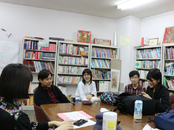 关西外国语大学学研都市校区B栋1楼的“孔子学院交流中心”是中日学生交流学习的地方。中国留学生和日本学生在此一起学习语言和文化,度过轻松愉快的美好时光。