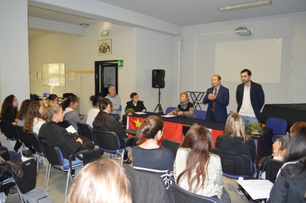 2017年10月18日,圣心孔院院长郁有学教授及孔院中、意方青年汉语教师赵然和TUCCI参加了米兰帕莱托中学汉语课程的结业典礼,出席此次典礼的还有帕莱托中学的校长和教师代表。帕莱托中学是圣心孔院去年新开辟的汉语教学点。学校坐落于米兰市的西北方,是一所职业高中,在这所环境优美的花园式学校,许多16到18岁左右的意大利少年在这里享受着美好的校园生活。