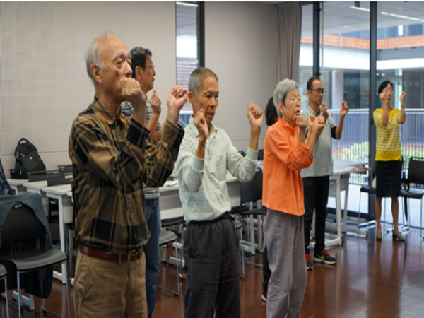 第二场讲座主题为——身体保健操。考虑到秋冬气候渐寒,多数时间大家会在室内活动,赵志峰老师为大家介绍了一套易学、安全的室内体操。二十四节体操,活动了全身的各个部位,大家在赵老师的带领下,一边按照整齐的节奏用汉语数数:“一、二、三、四,五、六、七、八……”,一边跟随老师认认真真地做着动作。教室里被欢乐的话语和热烈的气氛所浸染。讲座结束的时间到了,大家还意犹未尽,向赵老师请教个别动作的姿势。赵老师临别时还鼓励大家要坚持做下去,一定会对身体健康有很大益处。