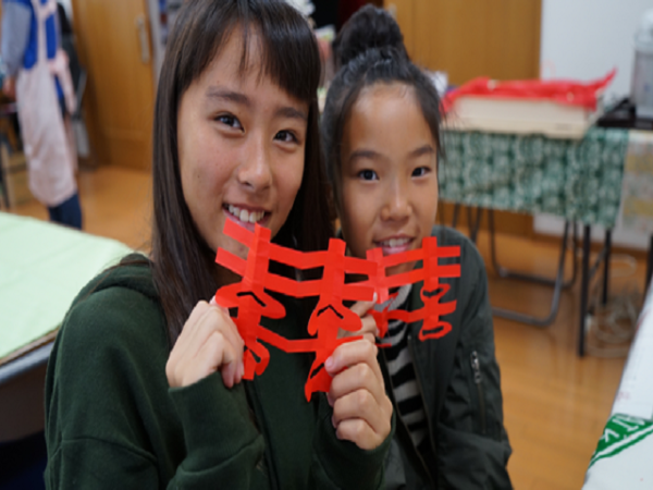 井井有条的会馆内,分为不同的几个展台:食品展台、手工玩具展台、和服配饰展台、家庭装饰品展台、卫生用品展台等,展卖小区居民自己制作的工艺品,设计独特,很有日本风格。孔子学院的展台分为手工12生肖剪纸展卖区和剪纸体验区。小区居民和孩子们都被惟妙惟肖的生肖剪纸所吸引,很多孩子和居民兴致勃勃地参加了体验活动,巧手翻飞,剪出了立体的春字和大红的双喜字;有的母亲为孩子购买生肖剪纸,一个居住在小区的钢琴教师购买了一套生肖剪纸,并高兴地告诉我们,她对中国文化很感兴趣,收藏一套12生肖剪纸一直是她的愿望。看到她实现愿望后的喜悦,我们觉得真是不虚此行。