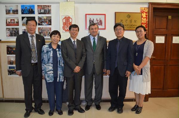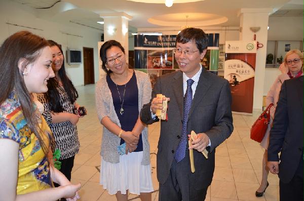 当地时间6月1日,北京语言大学校长崔希亮教授、国际交流处处长张宝钧教授、翻译学研究所所长刘和平教授、商学院金融系李京晔副教授一行四人访问了锡比乌孔子学院,锡比乌孔子学院理事长康斯坦丁·奥普雷安先生(Constantin ·Oprean )、锡比乌孔子学院院长宋少峰先生全程陪同。为欢迎崔校长一行的到来,孔子学院的老师和学生们精心准备了欢迎仪式,以表达对他们的诚挚欢迎。