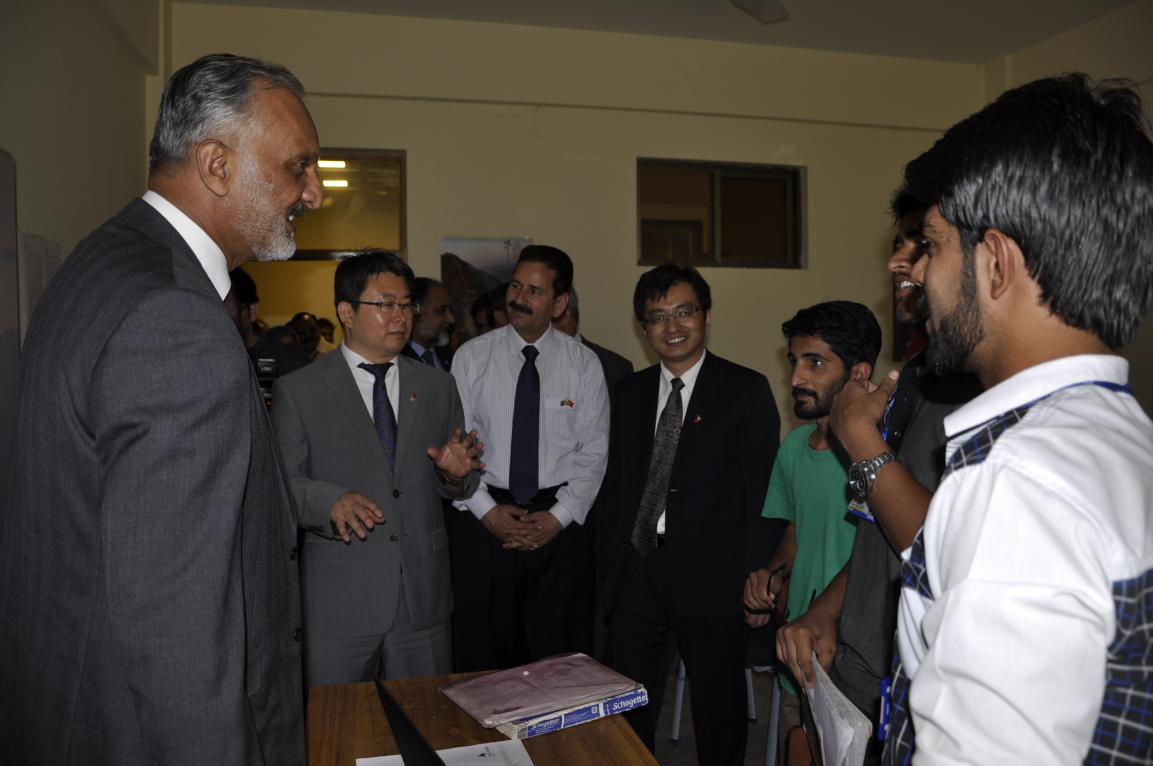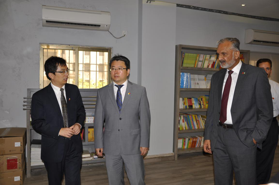 会见结束后代表团一行出席了伊斯兰堡孔子学院新场地的启用仪式。该场地总面积超过2200平方米,2013年始建,包含7间教室、1间图书室、2个语言实验室,可以充分满足孔子学院日常教学和工作需要,此外还有文化展览厅、会议室、学术报告厅等配套设施,功能齐全、设备先进,使伊斯兰堡孔子学院成为现代化程度较高的教学场所,在2015年世界孔子学院大会上,伊斯兰堡孔子学院被命名为全球首批示范孔子学院。许琳主任在贺信中表示,中巴两国友谊源远流长,是全天候的好邻居、好朋友、好兄弟、好伙伴。伊斯兰堡孔子学院与北京语言大学合作开办10年来,积极开展汉语教学,举办丰富多彩的文化活动,先后4次被评为全球“先进孔子学院”并获“孔子学院开创者”称号,为两国人民架起了“心灵高铁”,为增进中巴友好做出了重要贡献,并希望在中巴建交65周年之际将伊斯兰堡孔子学院打造成推动中巴教育文化交流与合作的重要平台,为助力“中巴经济走廊”建设,增进中巴青年一代的了解和友谊做出新的更大的贡献。夏主任在致辞中也希望伊斯兰堡孔院要抓住“中巴经济走廊”建设的契机,以示范孔院场地竣工为新起点,继续在汉语教学、文化活动、HSK考试、本土教师培训等方面加大发展力度,丰富内涵建设。我相信,在中巴双方的共同努力下,伊斯兰堡孔子学院能成为“中巴经济走廊”上民心相通的桥梁和平台。