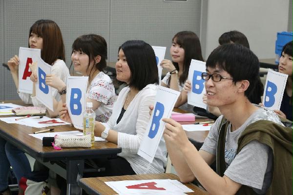 本次活动由两部分组成。首先进行的是中日文化知识竞赛。日本学生和中国学生自由组合,共同挑战回答与中日两国国情相关的题目。题目均经过精心设计,既贴合时事又趣味横生。小组成员们往往需要共同协作,互相帮助,知识互补才能得出正确答案。竞赛以答题正确率为序,决出名次。阵阵掌声中,小组成员们捧着可爱的熊猫玩偶、汉语单词卡和做饺子的擀面杖等奖品,露出了欢乐的笑容。